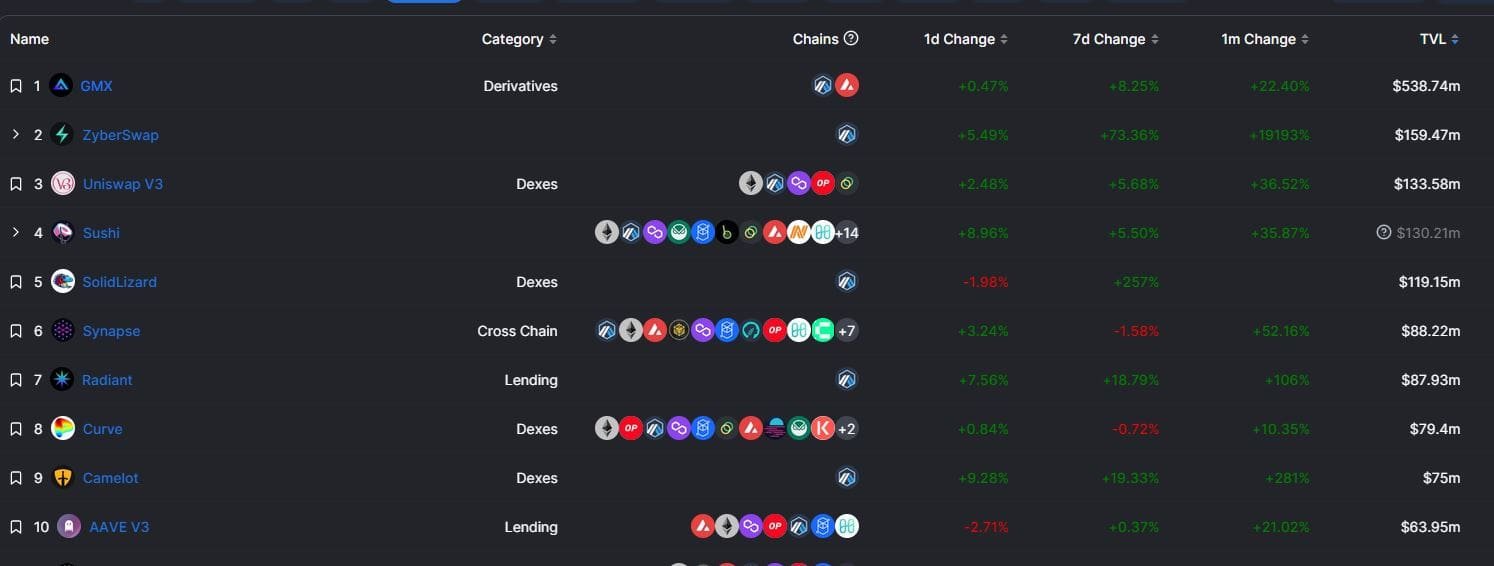Meanwhile, Arbitrum native projects’ TVL soared as well. For example, the decentralized exchange ZyberSwap exploded by over 15,000% in the previous month, becoming the second-largest project on the Network by TVL.