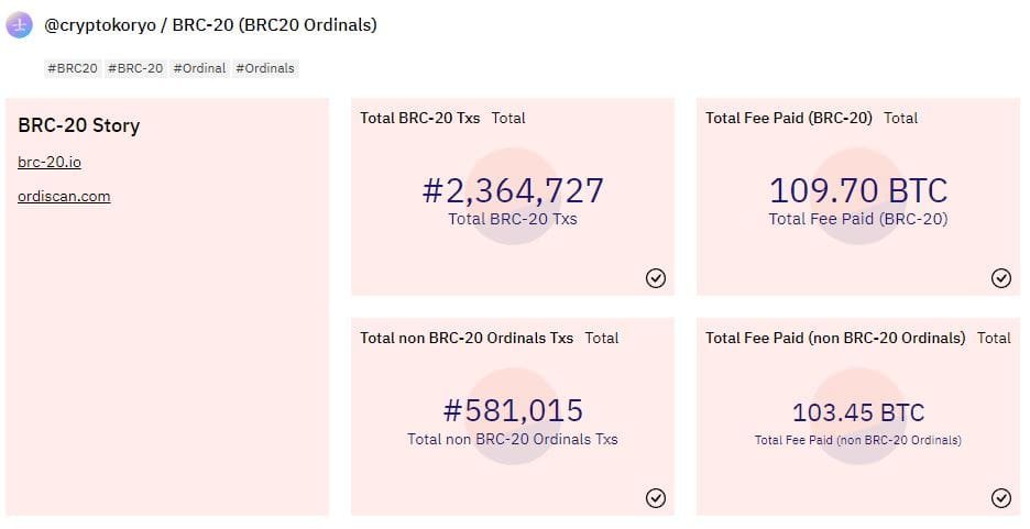 According to crypto analyst CryptoKoryo, the BRC-20’s novelty partially lies in its “perceived security” on the Bitcoin blockchain.