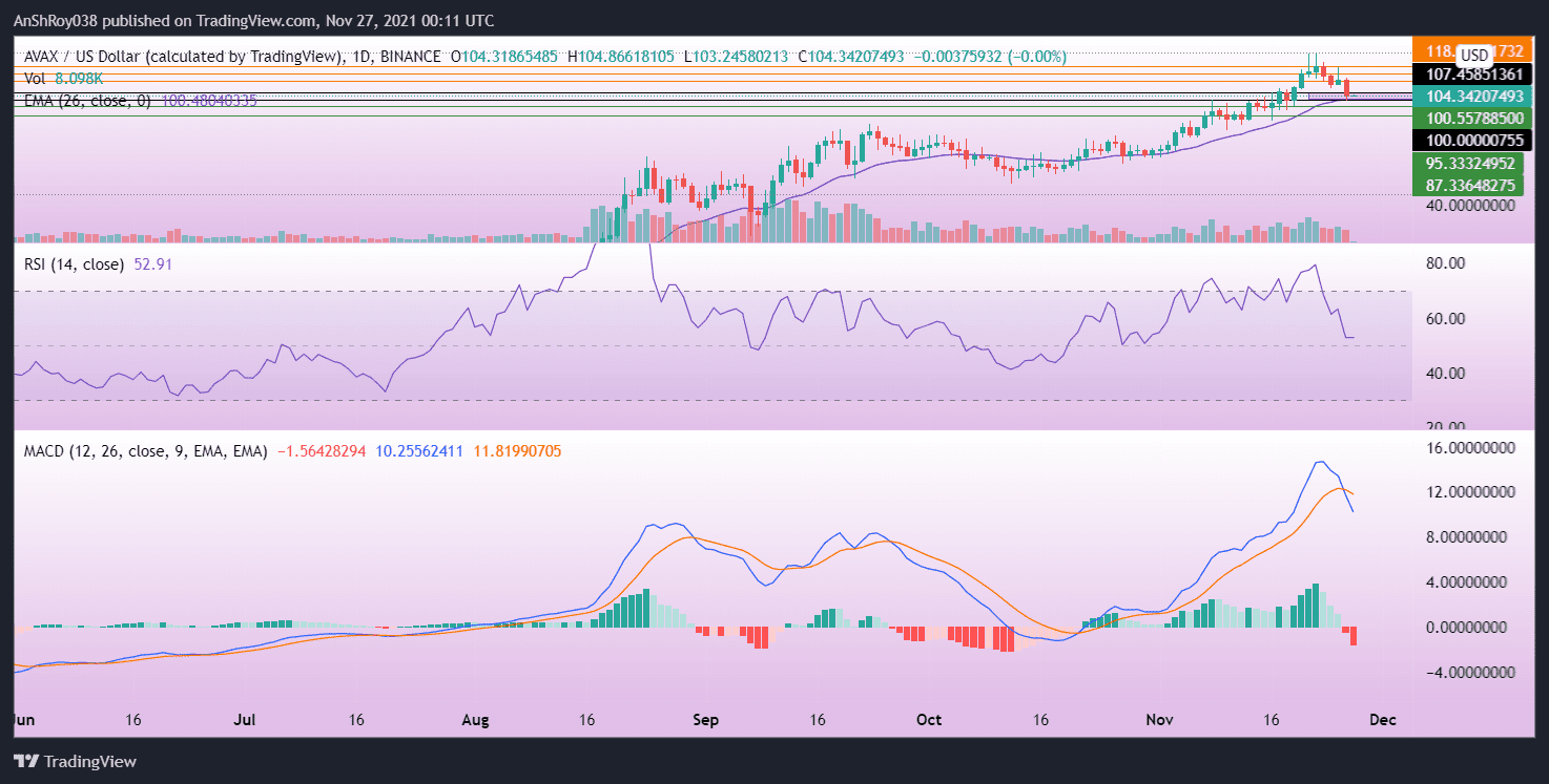 NEW DELHI (CoinChapter.com) — Smart contracts platform Avalanche’s epic bull run took a break after charting a new ATH on Nov 22. The platform’s native token, AVAX, fell 34.3% between its ATH ($1513.754) and Nov 26’s low ($99.58).