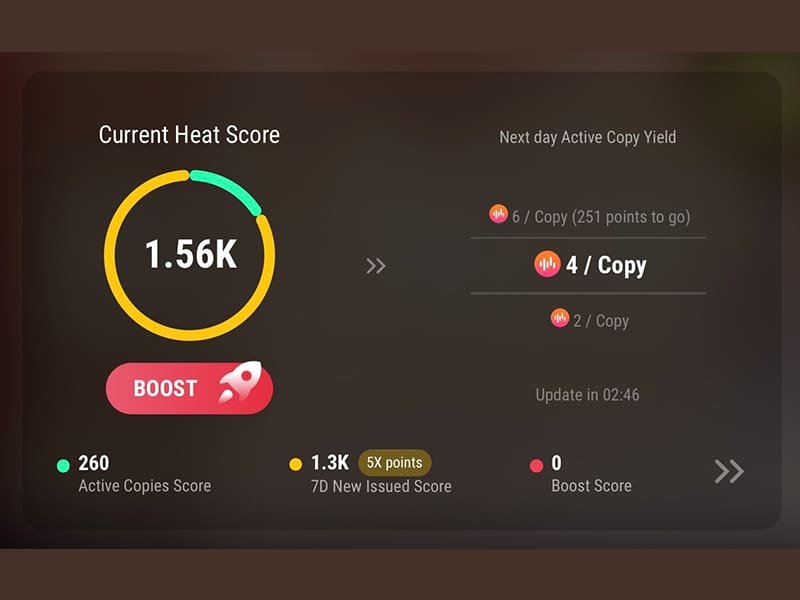 Boost Score: Users can further promote songs they love by using tokens they’ve earned, sort of like giving a song extra points.