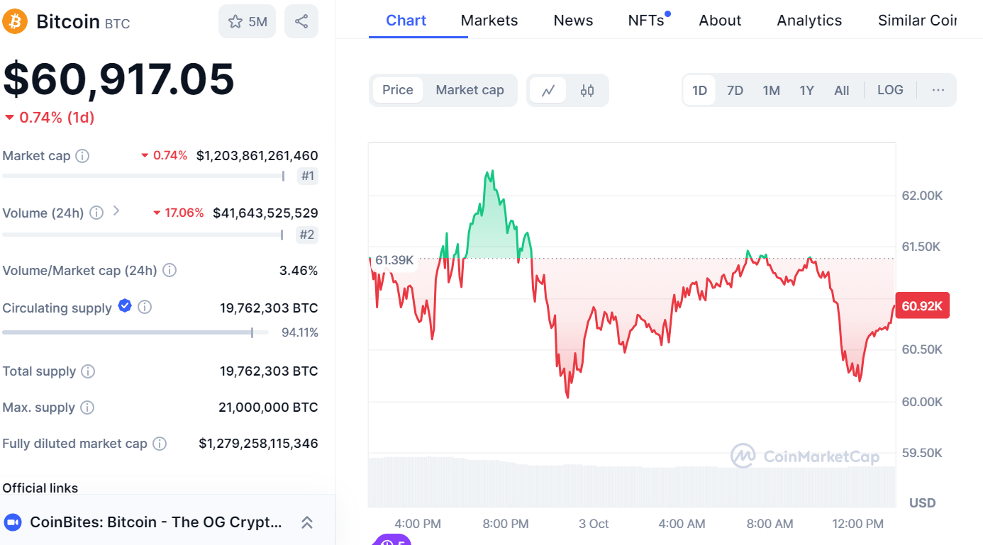 NAIROBI (CoinChapter.com) — The Bitcoin (BTC) price pullback faltered below $61,000 as the Middle East tensions emerged. This was after Iran threatened to launch missile strikes on Israel, which made investors panic and sell risky assets, including cryptocurrency. October has traditionally been a strong month for Bitcoin, but due to geopolitical tensions affecting global markets and putting pressure on the cryptocurrency industry.