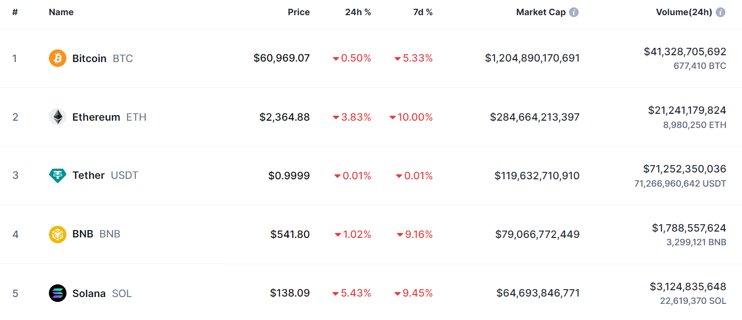 Altcoins Fall Alongside Bitcoin as Ethereum, Solana Suffer Losses