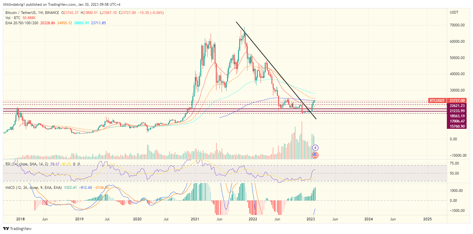 YEREVAN (CoinChapter.com) – Bitcoin (BTC) reached its highest value year-to-date on Jan 29, settling near $23,600 early on Jan 30. Moreover, several indicators indicate a bullish continuation to $25,000, despite setback worries.