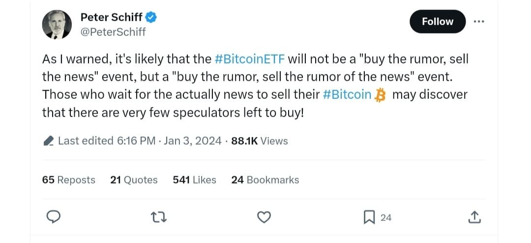 This kind of negative feedback from the public regarding Bitcoin ETF cast a little doubt on approval. Economist Peter Schiff believes that Bitcoin speculation ahead of a potential ETF approval may fizzle out before any official decision, leaving few buyers to sell to if approval comes.