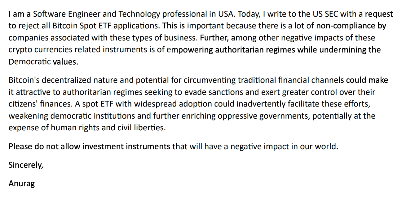 One of the most recent letters submitted to the SEC claimed that certain aspects of Bitcoin could benefit authoritarian regimes. Specifically, the letter argued that Bitcoin’s decentralized, borderless design allows it to operate outside of traditional financial channels. This could make Bitcoin “attractive to authoritarian regimes looking to evade sanctions and exert greater control over their citizens,” the letter alleged.