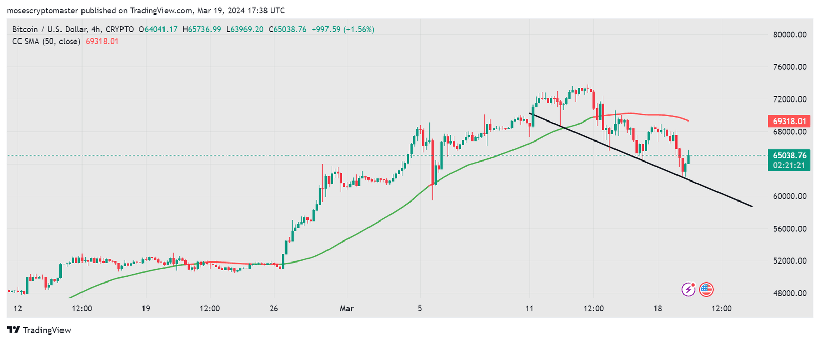 Currently, Bitcoin trades at $65,455.26, marking a 2.51% decrease over the last 24 hours. This downturn follows a more dramatic plunge, where Bitcoin’s value dropped more than 6% in the immediate aftermath of the flash crash. Despite a subsequent price recovery, Bitcoin’s valuation remains 2.5% lower than its previous 24-hour high.