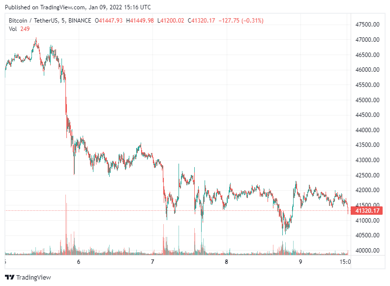 The bears took complete control over the past 72 hours dumping BTC by $4,000 before another drop drove the asset below $42,000 on Friday. On Saturday, the flagship cryptocurrency consolidated at $42,000 for a while but not long after it fell to $40,500, which became the lowest price line since late September 2021.