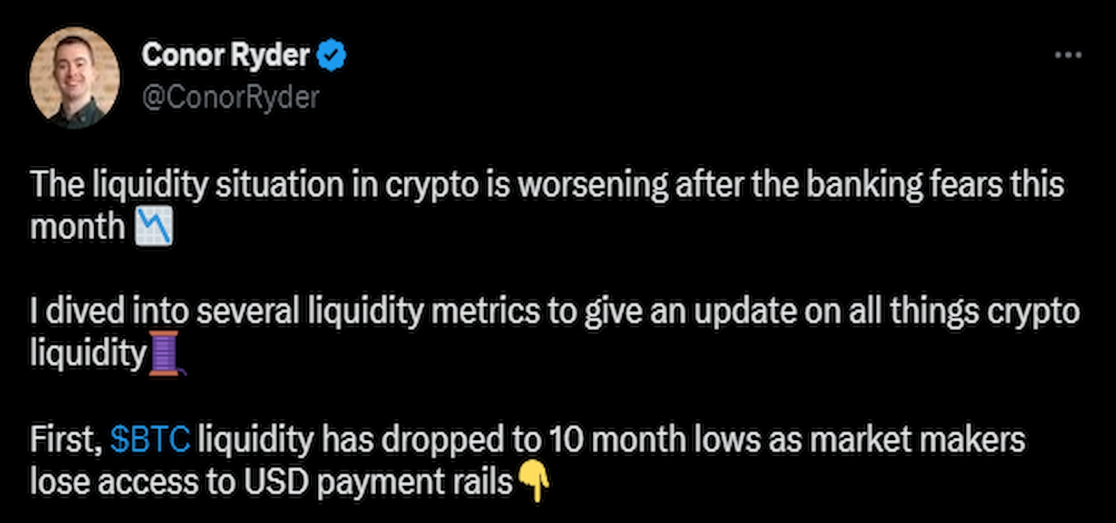 Ryder wrote in a tweetDespite a recovery in 2023, trading volumes and liquidity have declined across the crypto market compared to 2022. Small retail investors left the market due to regulatory crackdowns and a slew of scandals in 2022.