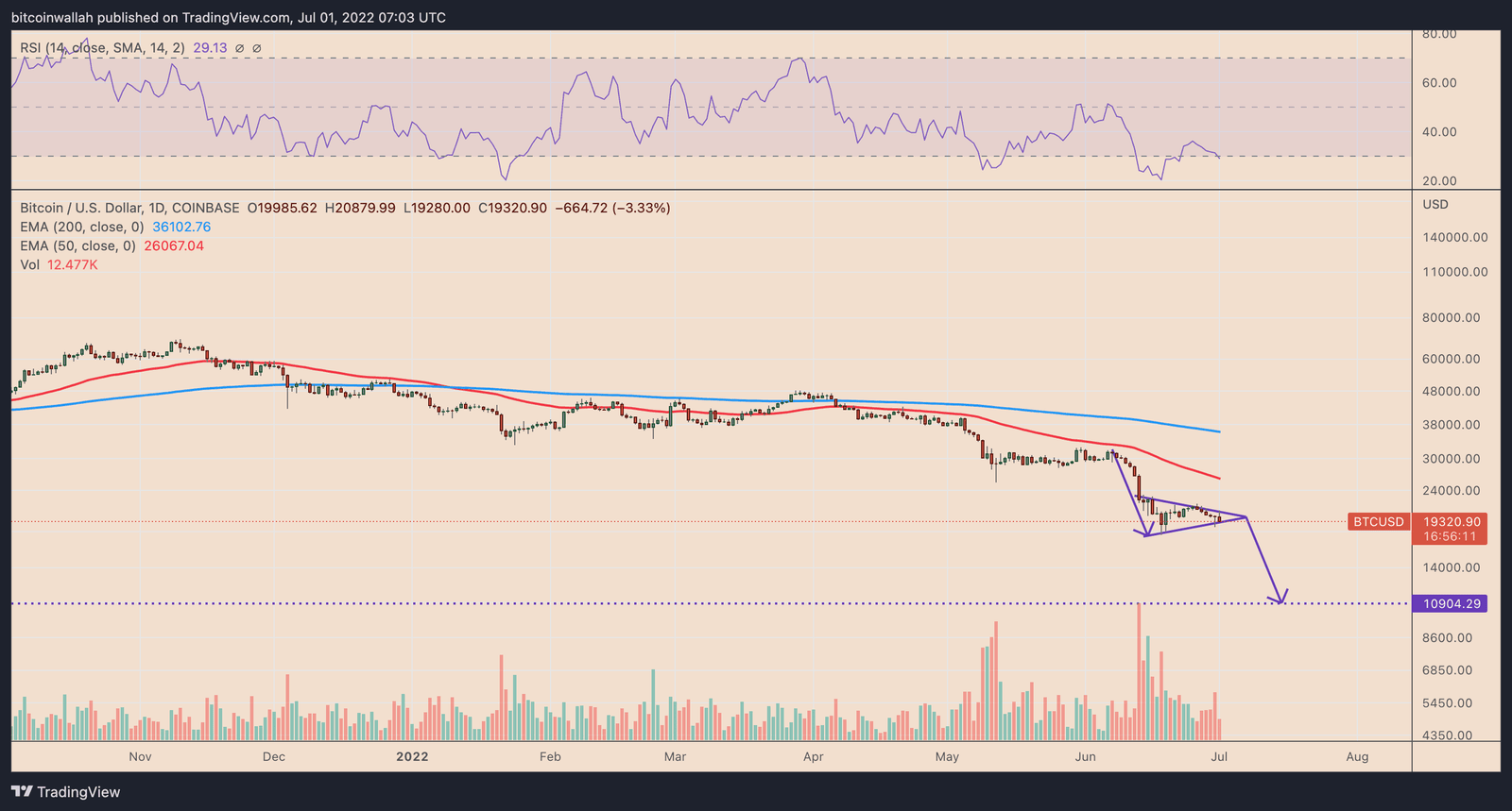 Bitcoin forms a bear pennant