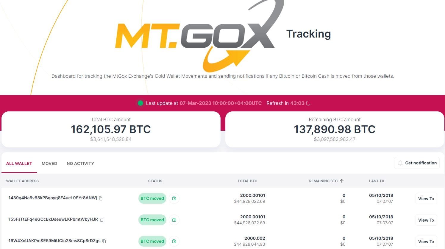 As of Mar 7, the Mt. Gox cold wallet contained nearly 140,000 BTC, worth over $3 billion.
