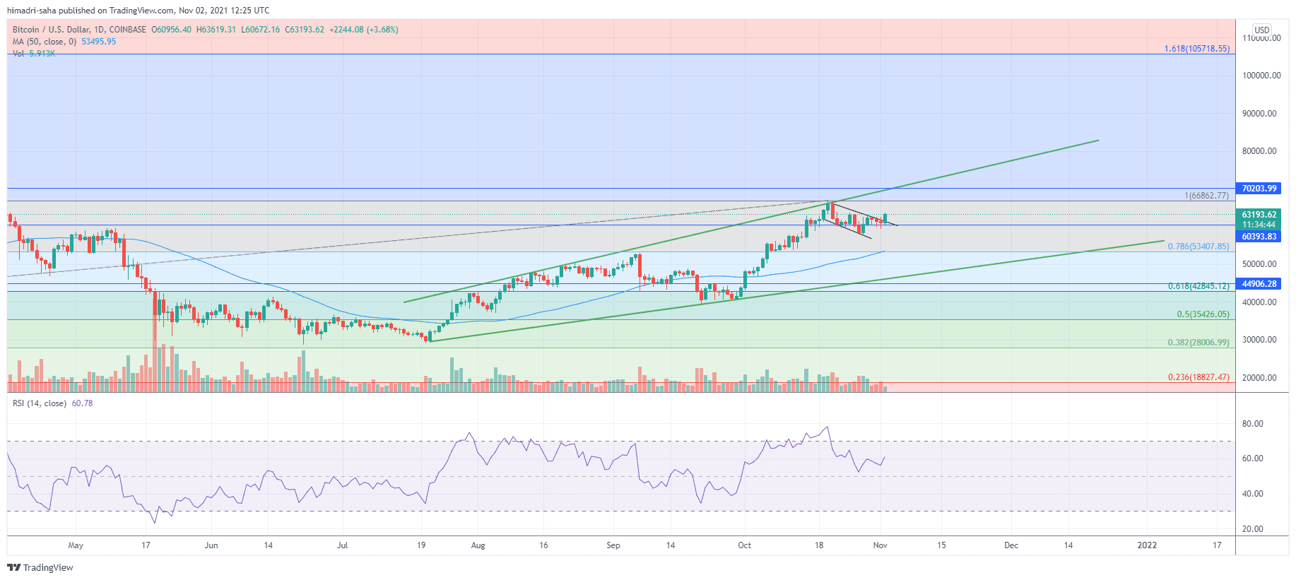 Despite numerous bearish attempts at pushing BTC/USD prices down, the flagship cryptocurrency held strong to the $60,000 support. The pair was trading within a Descending Channel formation since October 21, 2021, but neutral (50-60) relative strength index (RSI) numbers and local bottom sentiment brought back buyers.