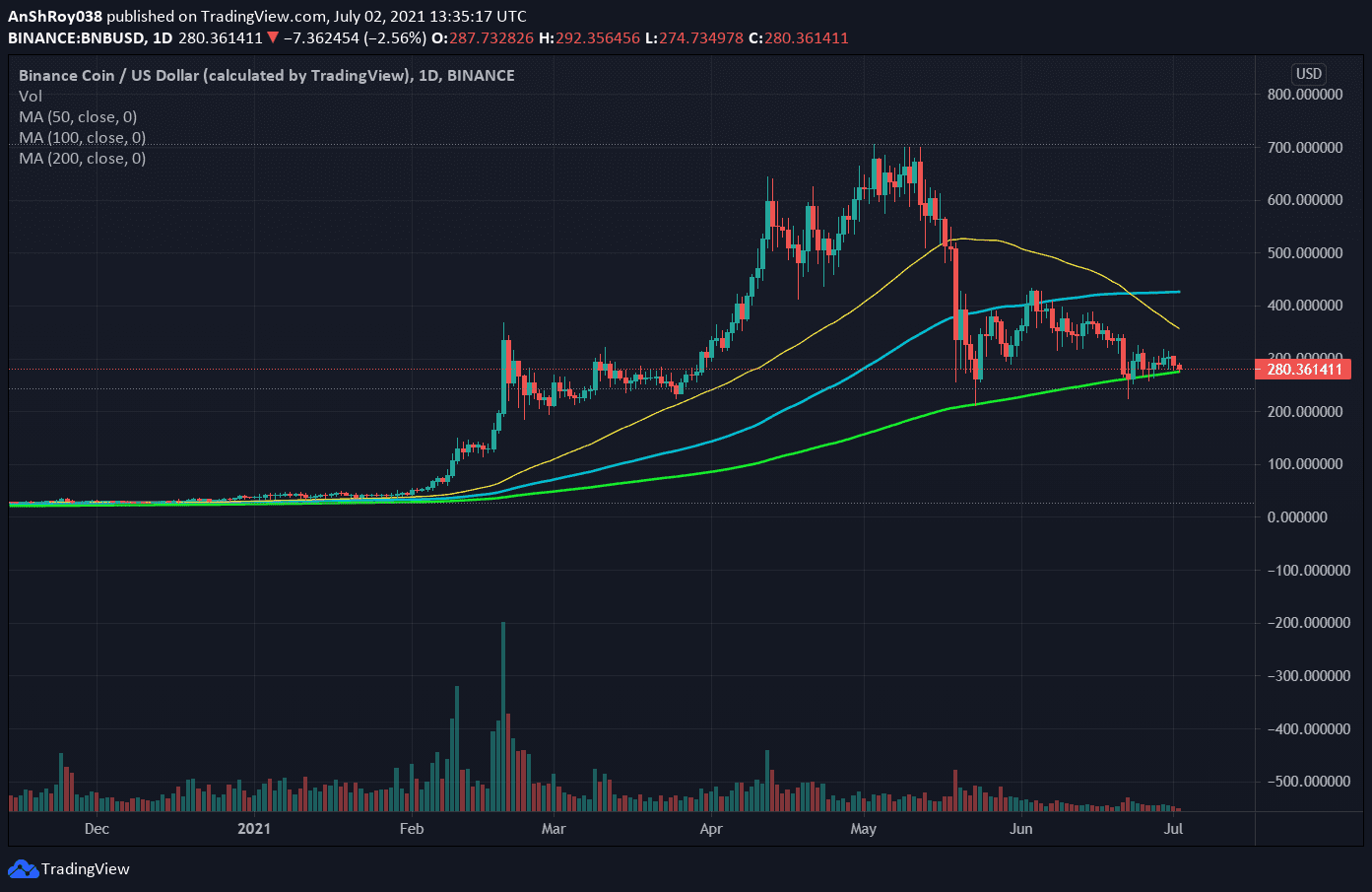 BNB’s daily price chart | Source: BNBUSD on TradingView.com
