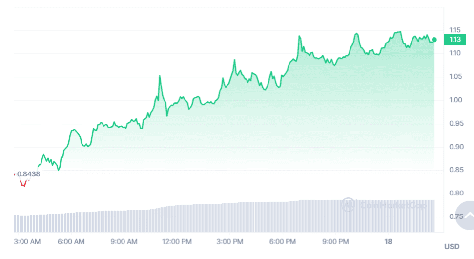 The recent price of the BOBA token saw interesting activity. As of the latest updates, the BOBA token price stands at $1.12, marking an impressive increase of 33.56% in the last 24 hours. This recent surge has contributed to a market capitalization of approximately $192M USD.