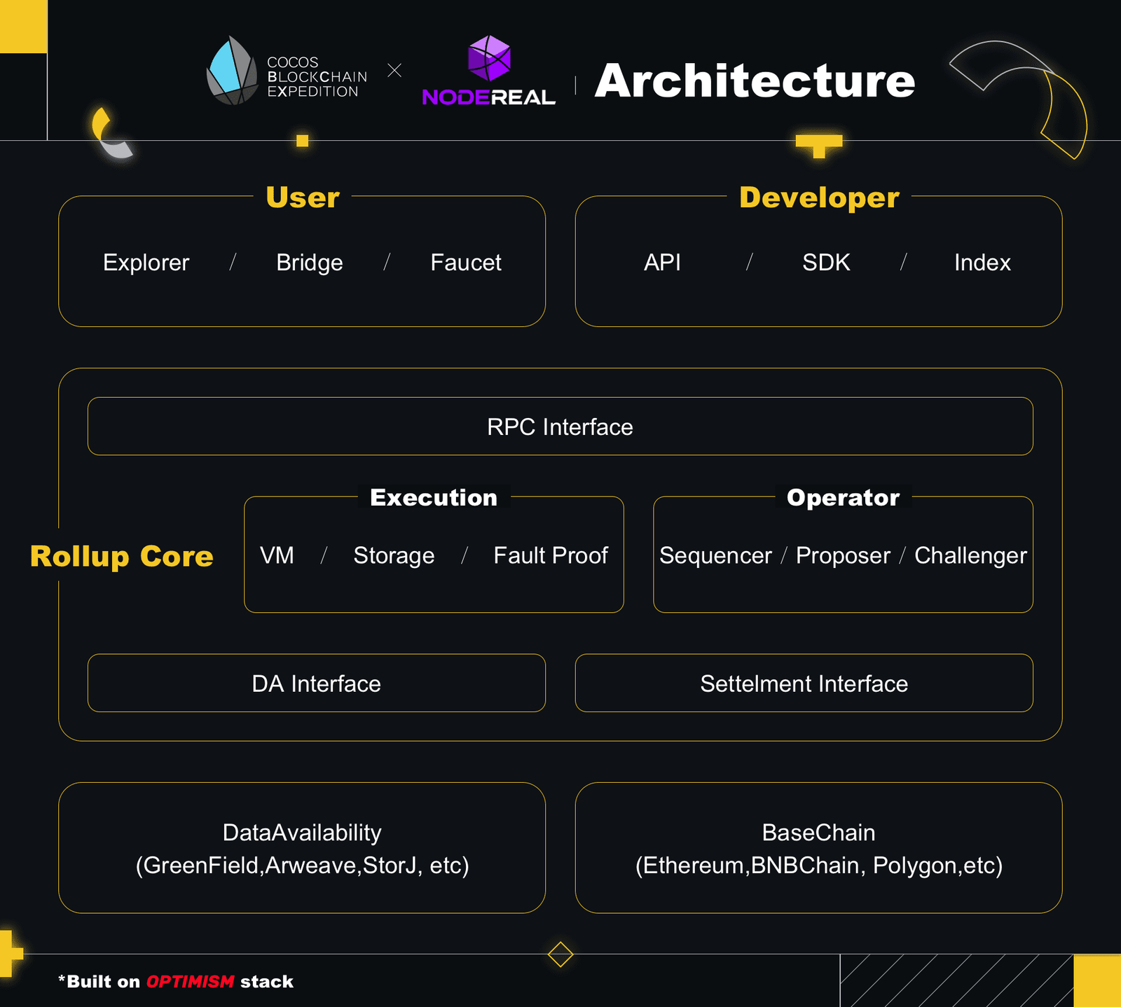 The L2 built by Cocos-BCX and NodeReal is an existence that takes advantage of both the BNB Chain and Optimism. It is built on the open-source OP Stack and has benefits such as safety, low cost, and developer-friendliness. It aims to become a platform that focuses on the gaming field and constructs an open and interconnected “super chain” to bring the next billion users to Web3.
