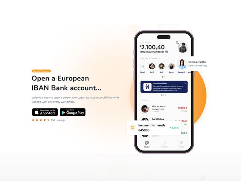 Opening a CodegoPay Business account is quick and easy, requiring only 10 minutes to complete the process. It is free to set up and enables users to have a multi-IBAN account, including a local BE IBAN and a direct debit IBAN, while paying some of the lowest fees available.