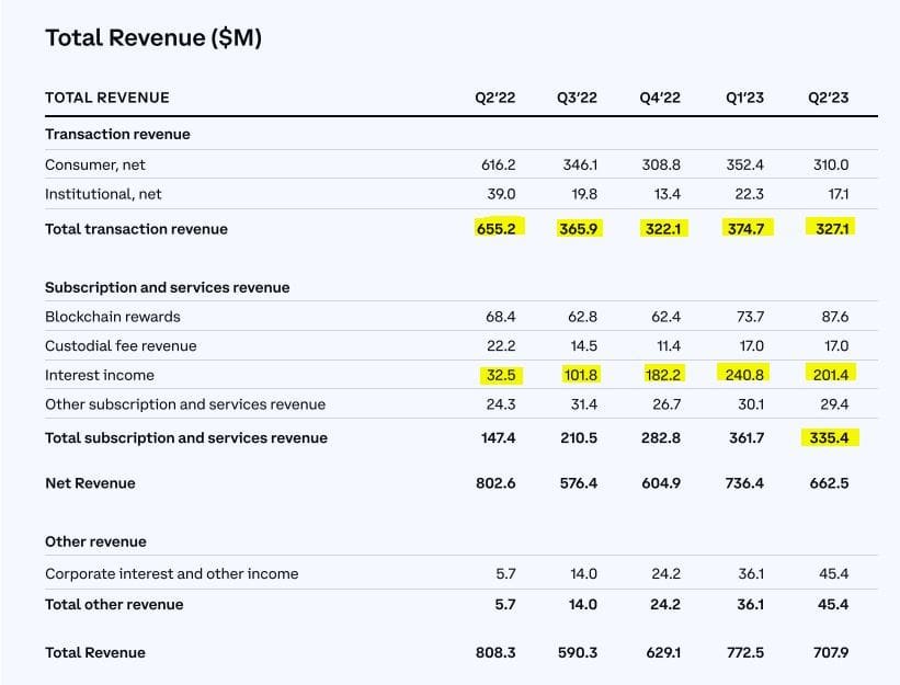 However, the revenue breakdown below demonstrates the consistency of Coinbase’s interest income growth – nearly 530% year-over-year.