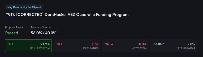 A major event in Cosmos is the recent passing of Governance Proposal No.917: a request by Dora Factory and DoraHacks for a $1 million grant from the Cosmos Hub community treasury. This grant will support ten rounds of Quadratic Funding within the Cosmos Hub ecosystem over the next two years.