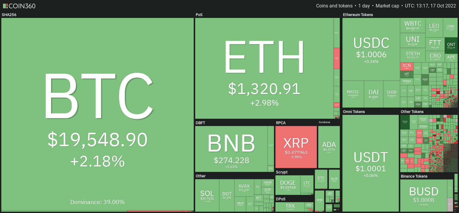 PATNA (CoinChapter.com) — The cryptocurrency market enjoyed a relief rally on Monday, with most crypto tokens registering gains as trading began in the third week of Oct.