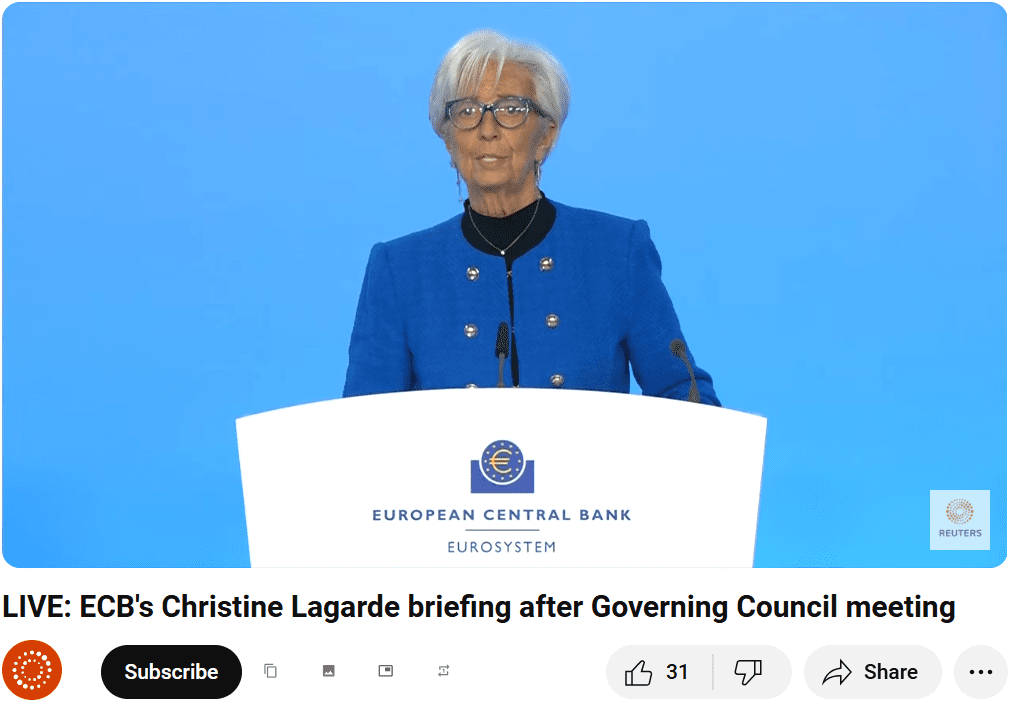 ECB’s Christine Lagarde addresses policy decisions. Source: YouTube