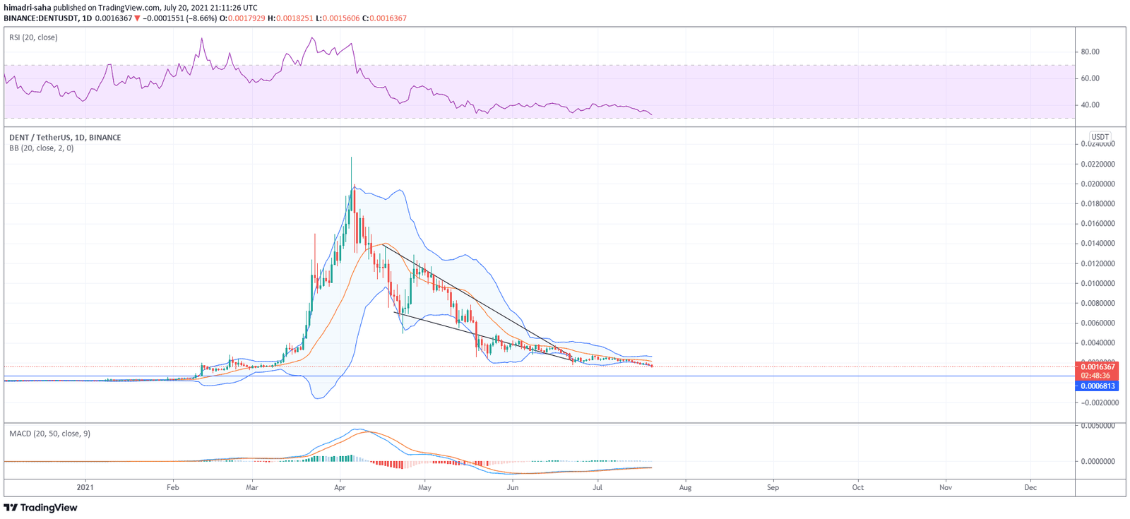 JAIPUR (Coinchapter.com) – DENT is down almost 94% from its all-time high of $0.0223. After April 5, bears took over and rattled DENT markets left, right, and center. Now the blockchain asset is changing hands with a $0.00165 price tag.