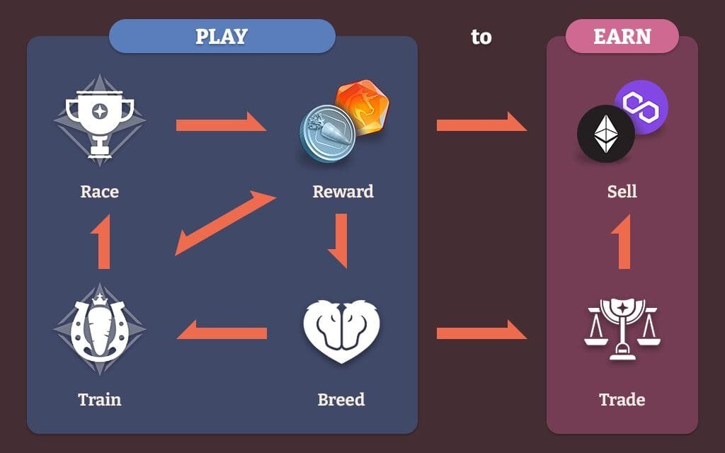 Derby Stars’ in-game training system allows players to breed, raise, and build their horses with different attributes, abilities, and skills over an extended period of time while competing against other players. Players can obtain Utility Tokens ($CRT) and Governance Tokens ($RUN) through a variety of game-related activities. Some examples of the play-to-earn mechanics of Derby Stars include: