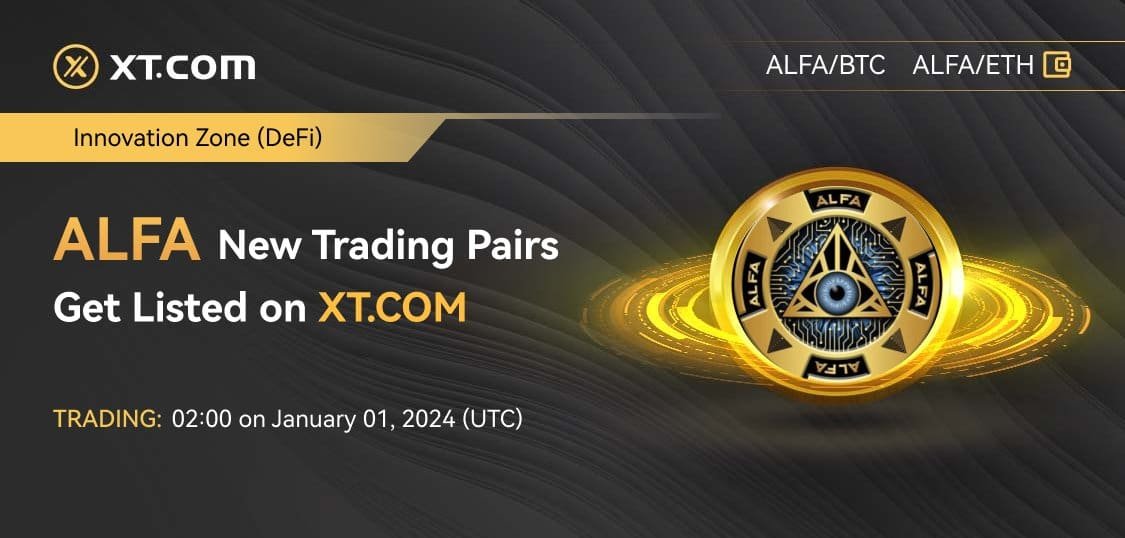 XT.COM, the world’s first socially infused trading platform, is thrilled to announce the listing of ALFA coin (ALFA) on its platform in the Innovation zone and the ALFA/USDT trading pair started trading at 2024-01-01 02:00 (UTC).
