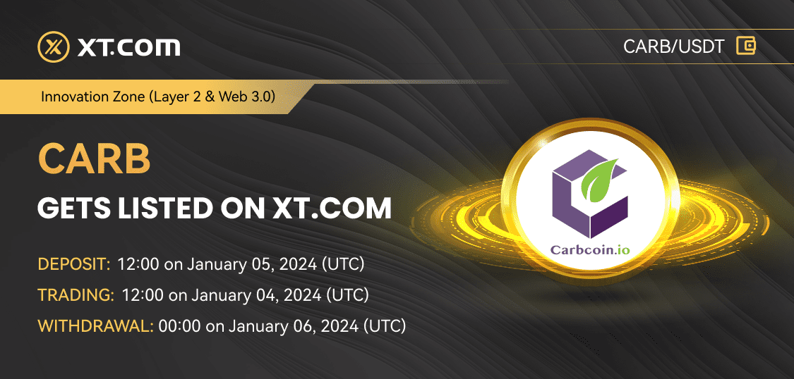 XT.COM, the world’s first socially infused trading platform, is thrilled to announce the listing of Carbcoin (CARB) on its platform in the innovation zone and the CARB/USDT trading pair started trading at 2024-01-04 12:00 (UTC).