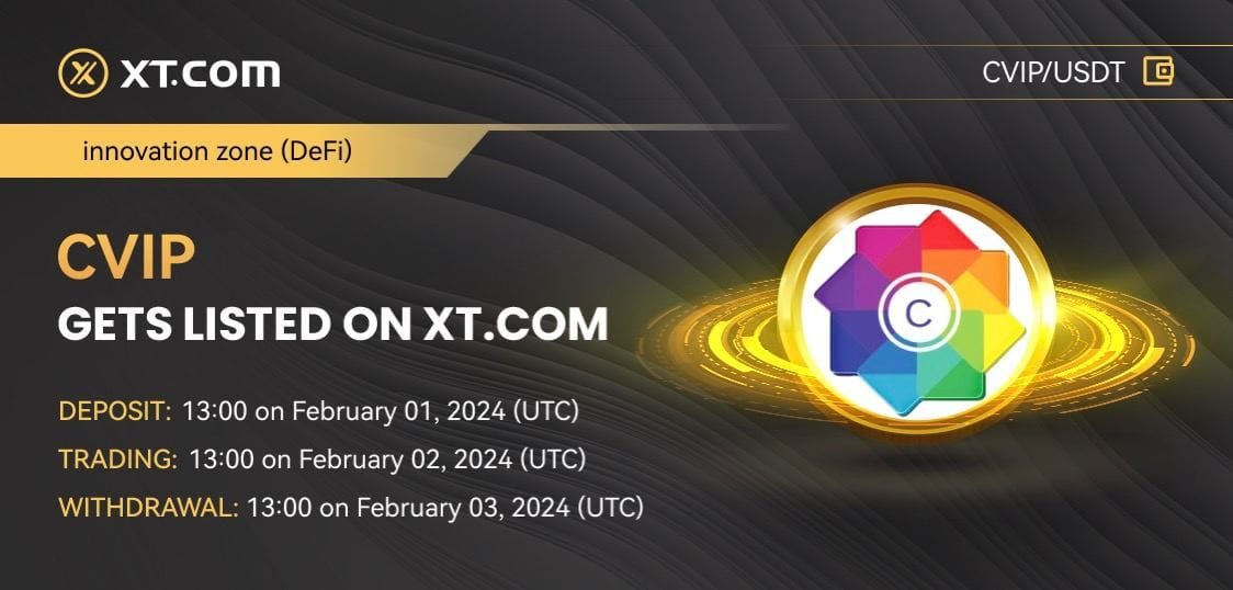 XT.COM, the world’s first socially infused trading platform, is thrilled to announce the listing of CVIP(CVIP) on its platform in the Innovation zone and the CVIP/USDT trading pair started from 2024-02-02 13:00 (UTC).