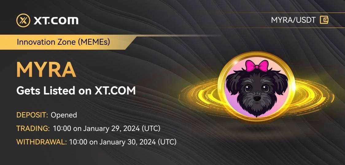 XT.COM, the world’s first socially infused trading platform, is thrilled to announce the listing of MYRA(RWA Finance) on its platform in the Innovation zone and the MYRA/USDT trading pair started from 2024-01-29 10:00 (UTC) and Withdrawals opened at 2024-01-30 10:00 (UTC).