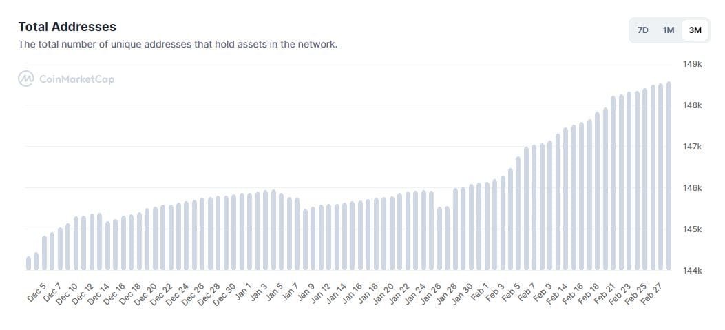 Additionally, the growing number of Dogelon users support the ELON coin price advance. According to cryptocurrency tracker CoinMarketCap, the total number of Dogelon coin wallets grew steadily for the previous three months and reached over 148,500 on Mar 1.