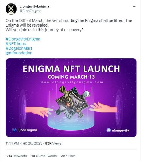 On the 13th of March, the veil shrouding the Enigma shall be lifted. The Enigma will be revealed. Will you join us in this journey of discovery?