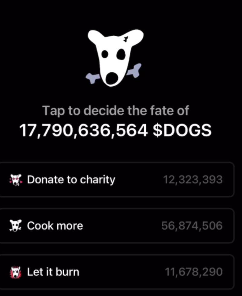 As of September 24, the voting process is ongoing via a mini-app on the DOGS platform. Early results show 56.8 million DOGS tokens have been voted for allocation to the treasury, 12.3 million tokens for charity, and 11.6 million for burning.