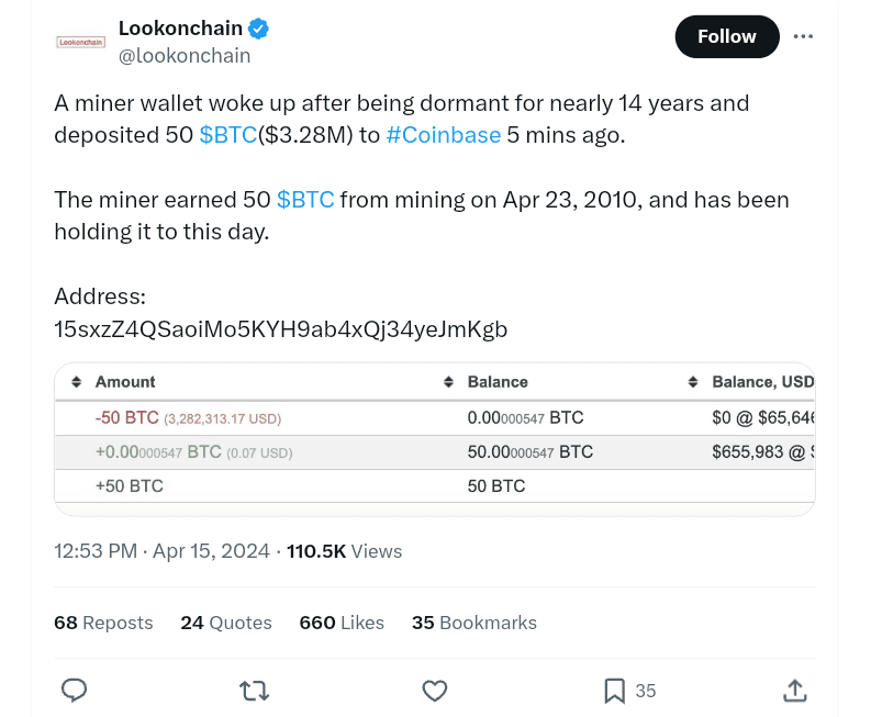 One such wallet awoke from nearly 14 years of dormancy in August 2023.