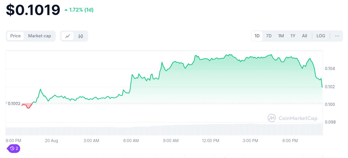 After Musk posted this pic, Dogecoin’s price surged by 3.56%, reaching approximately $0.105 per coin.