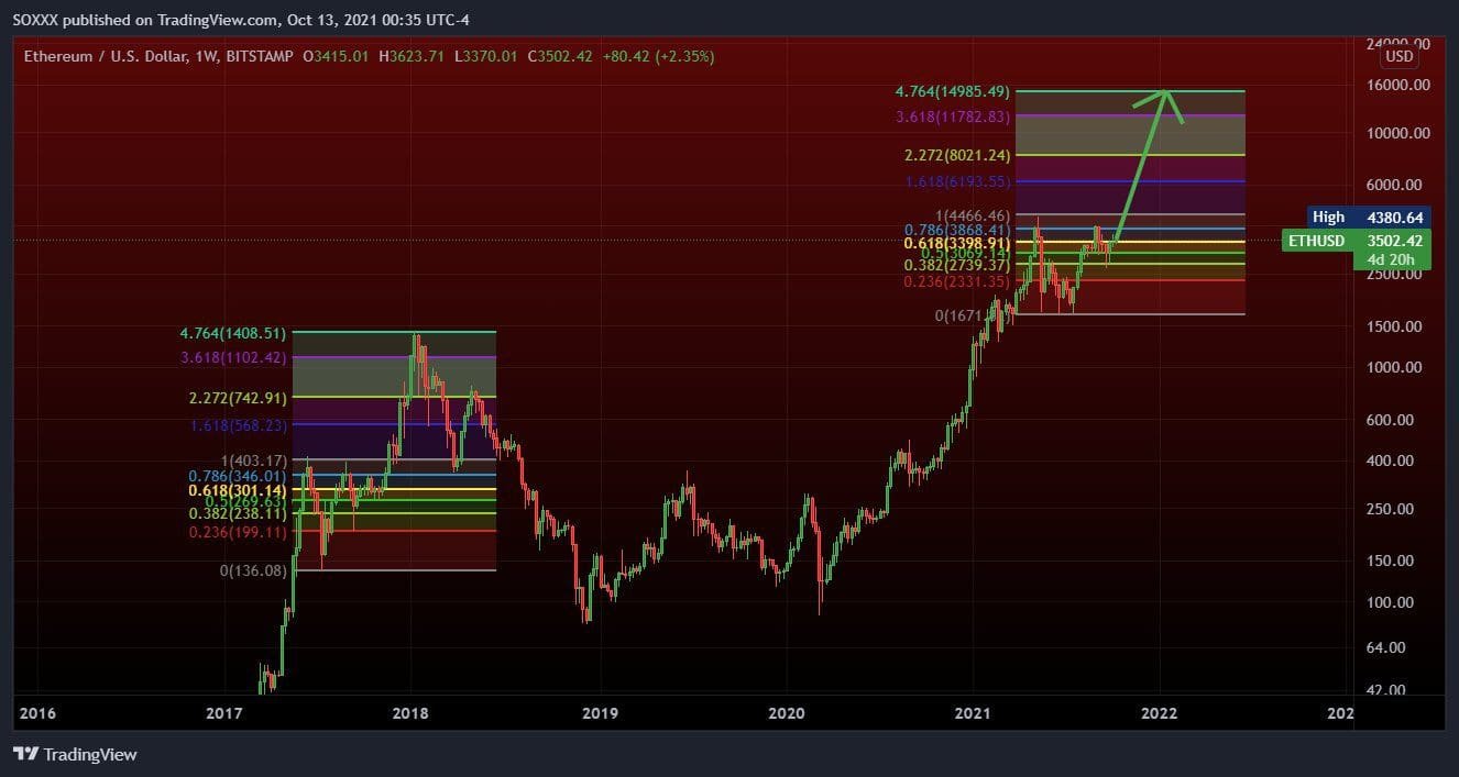 The 4.764 FIB breakout target of the 2021 consolidation would give #Ethereum a top of $15,000″