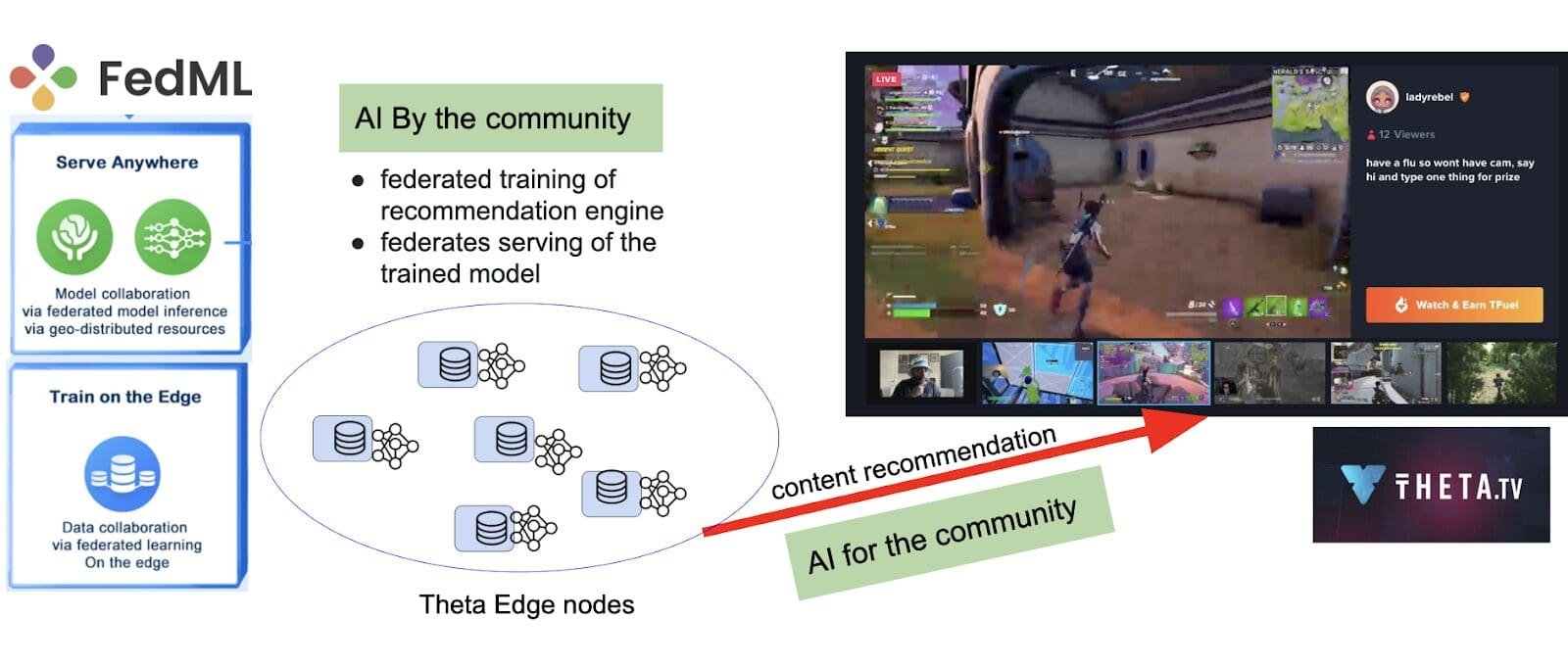 This partnership particularly focuses on empowering two exciting use cases in web3: generative AI and content recommendation. In the first use-case, FedML enables collaborative training of large-scale generative AI models (e.g., chatGPT-like chatbots, Stable Diffusion-like text-to-image model) on the datasets of participating users in a privacy-preserving manner. In the second use-case, FedML enables Theta TV community members to contribute their personal preferences and compute resources to train and deploy AI models for personalized content recommendation and advertisement to them while being rewarded for their contributions (i.e., enabling AI by the community for the community). To deliver this Web3 x AI platform to the community, the two companies build an interdisciplinary team with experts in machine learning, blockchain, computer vision, natural language processing, security (zero-knowledge proof), and privacy.