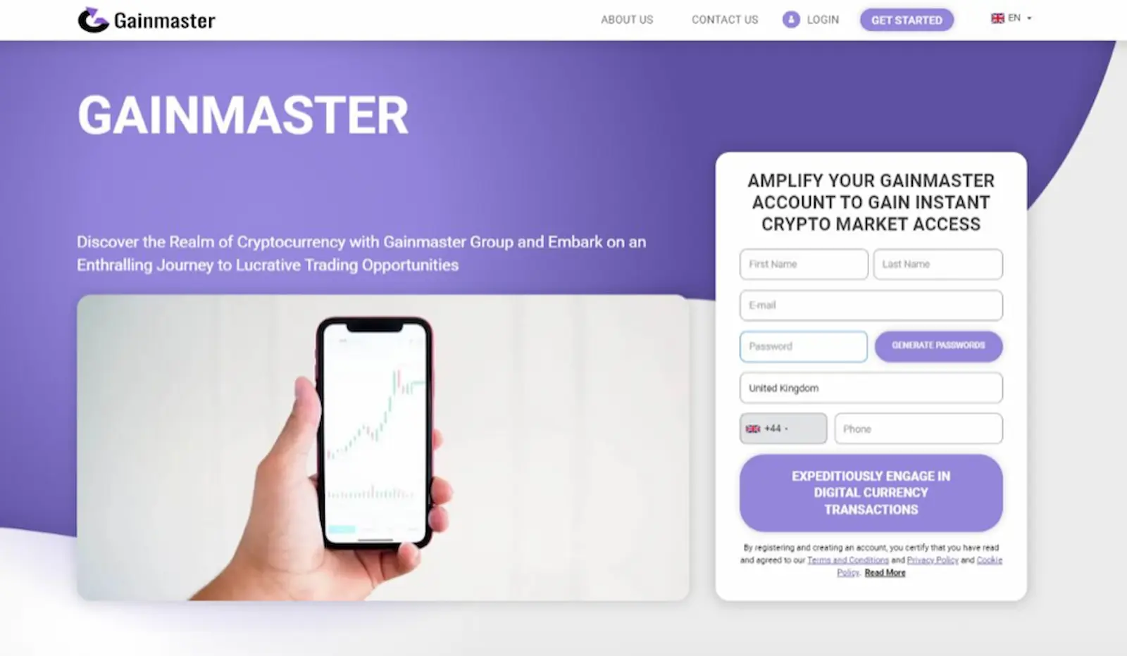 The first step is the registration process. For this, access the official Gainmaster website and fill in the mandatory fields in the registration form. The required information includes your full name, contact number, email address, and place of residence. Then, validate the Terms and Conditions and Privacy Policy of the platform. With this, the creators will verify the details and send a confirmation mail to activate your Gainmaster account. Once you validate the mail, your account will be ready.