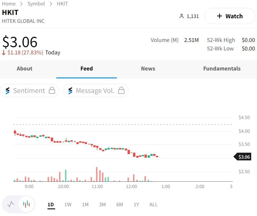 Hitek Global Inc. (NASDAQ: HKIT), an IT consulting and solutions provider based in China, has not had any news announcements in many months, but shares sold off today by 27.83%. Most recently, on April 27, 2023, the company announced its financial results for the fiscal year 2022.