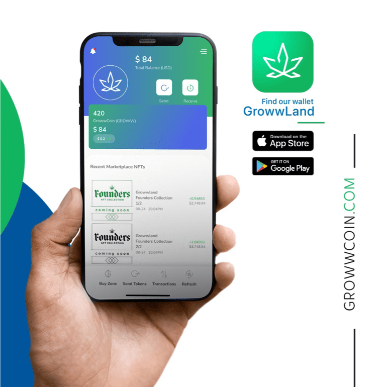 www.growwcoin.com Find the GrowwLand wallet on the App Store (iOS) and Google Play (Android)