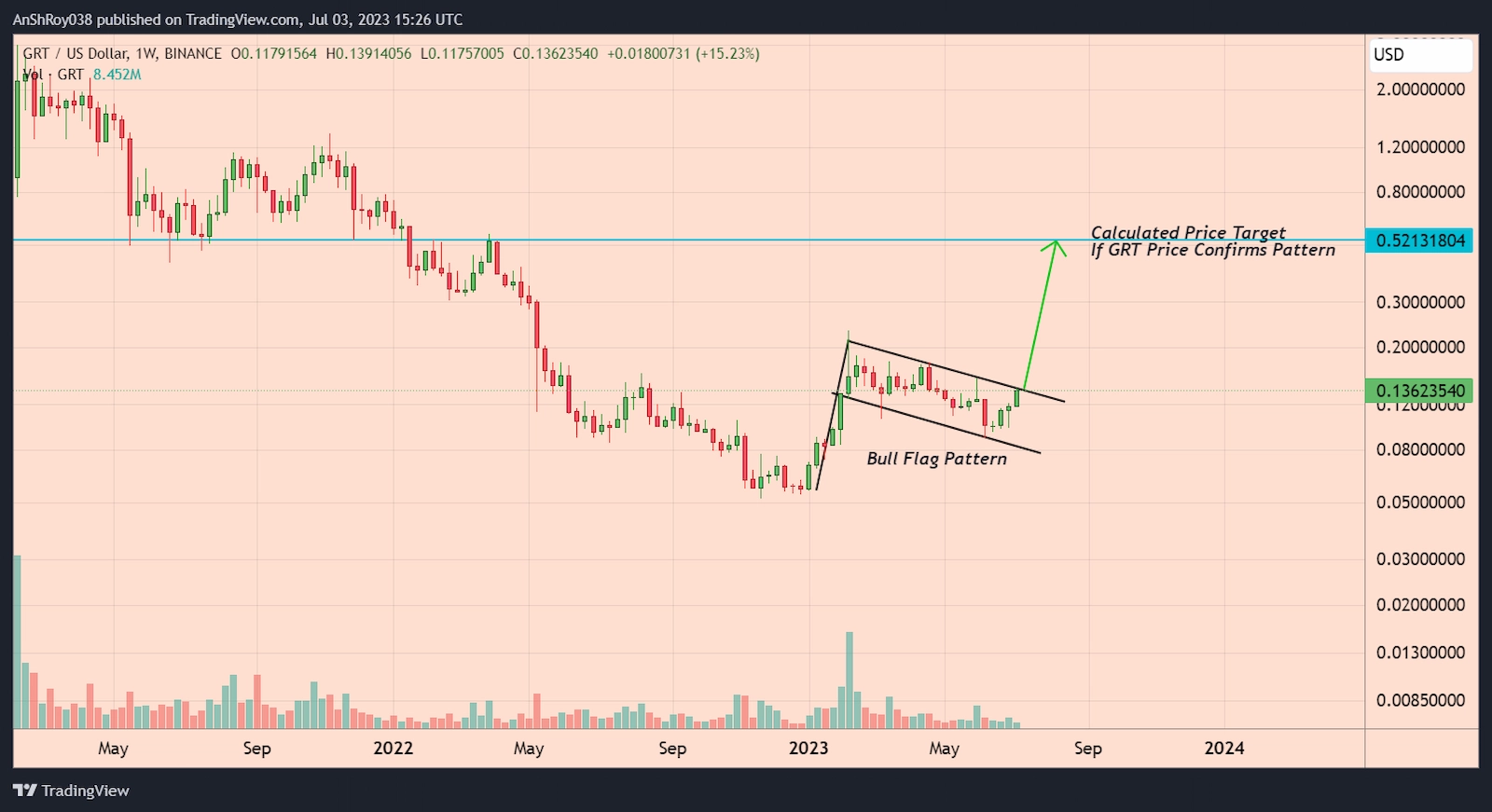 GRT price has formed a bullish technical pattern called the ‘Bull Flag.‘