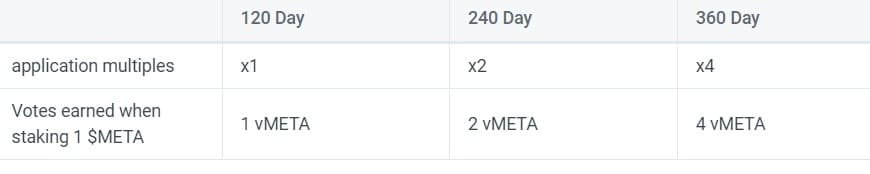 Long-term participants receive more voting rights and have more sway over the decision-making process because they are contributing more $META to their stake.