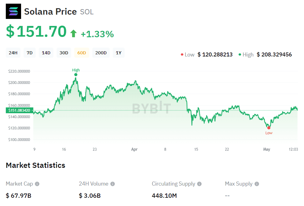 YEREVAN (CoinChapter.com) — Solana has become a standout in the cryptocurrency world, particularly during this bull season. Known for its wide adoption and robust blockchain network, SOL has seen remarkable highs, reaching up to $250 earlier. Despite a recent pullback, with the price hovering around $150, its resilience is noteworthy. Investors and enthusiasts are keeping a keen eye on its movements, anticipating another significant rise.
