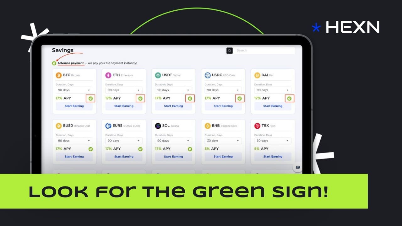 We know how important it is to feel safe when investing your money. That’s why we embedded an Advance Payment feature into HEXN — you can get part of your interest income right after you open a savings account and not worry about the integrity of our lending platform. The longer your deposit term, the higher your interest rate, and the more money you can get now.