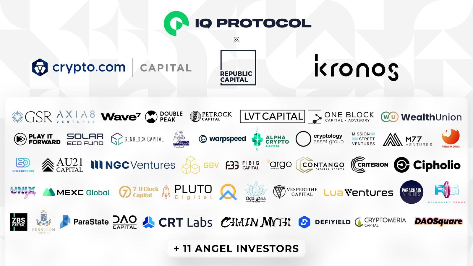 IQ Protocol has secured a $12m fundraising round led by Crypto.com Capital with backing from blue-chip investors including Republic Capital, Kronos Research, Genblock Capital, Axia8, GSR, M77, Double Peak Group, DAOSquare, Genesis Block Ventures, MEXC Global, and Argo Labs and many others
