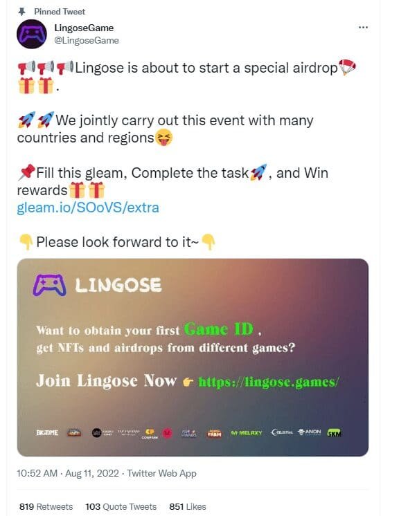 Meanwhile, Lingose’s official Twitter page announced a “special airdrop.”