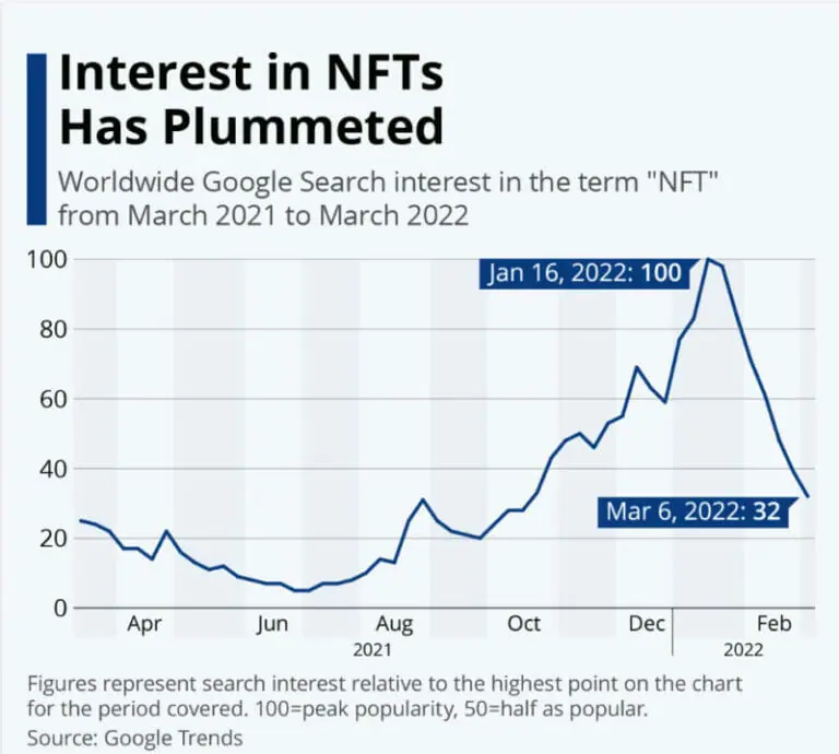 The data by GoogleTends suggest that global search interest in NFTs has dropped. The peak was recorded in January 2022, while the lowest was September 2022. Moreover, the base prices of NFT collections also dropped. Some collections even experienced a 90% drop in prices.