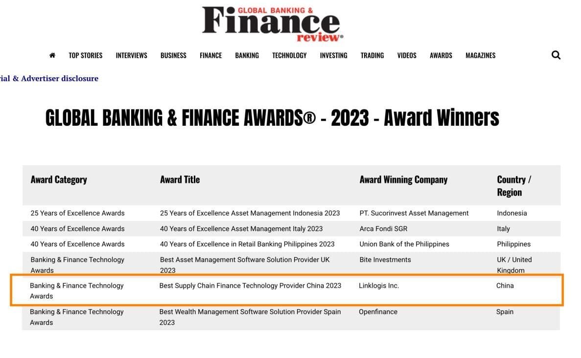 Global Banking & Finance Review, a prestigious British magazine, recently announced the winners of the 2023 Global Banking & Finance Awards. With cutting-edge technological capabilities, exceptional service experience, and longstanding impact on the market, Linklogis stood out in the selection and was awarded the “Best Supply Chain Finance Technology Provider China 2023”.