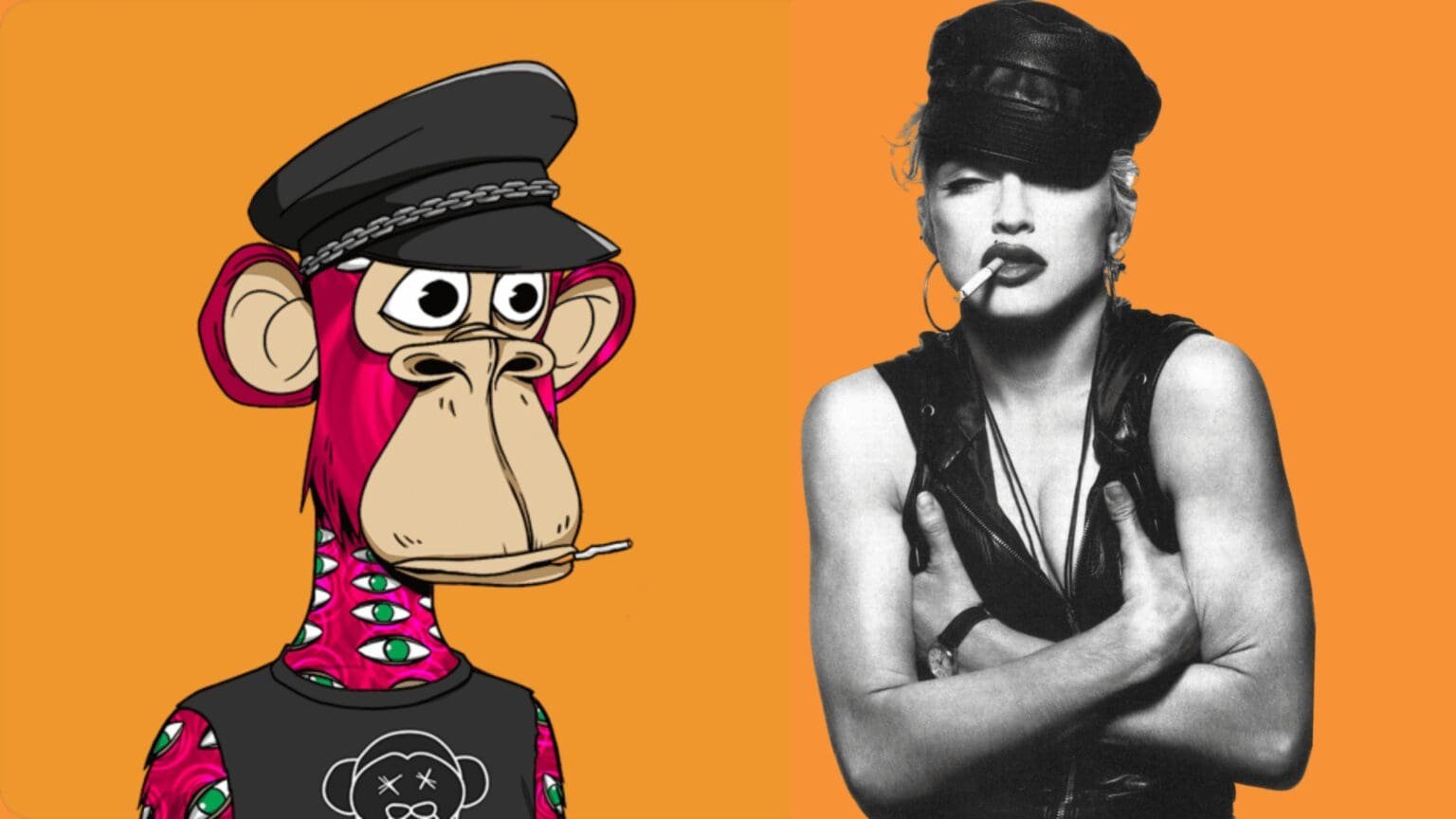 The Queen of Pop’s new NFT is a DMT-furred ape on orange background with a black sleeveless tee and an S&M hat. In the original NFT, her ape also has a cigarette in his mouth. However, while confirming her purchase on social media, Madonna has changed the background to blue. She has also removed the cigarette from the mouth of her ape.