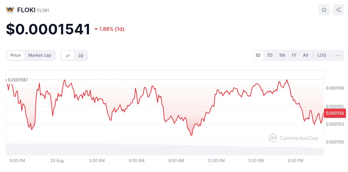 Floki is currently trading at $0.000154, with a 24-hour trading volume of $649.65 million. However, it has faced a recent price drop of 2.8% in the last 24 hours and has declined by 9.0% over the past week.