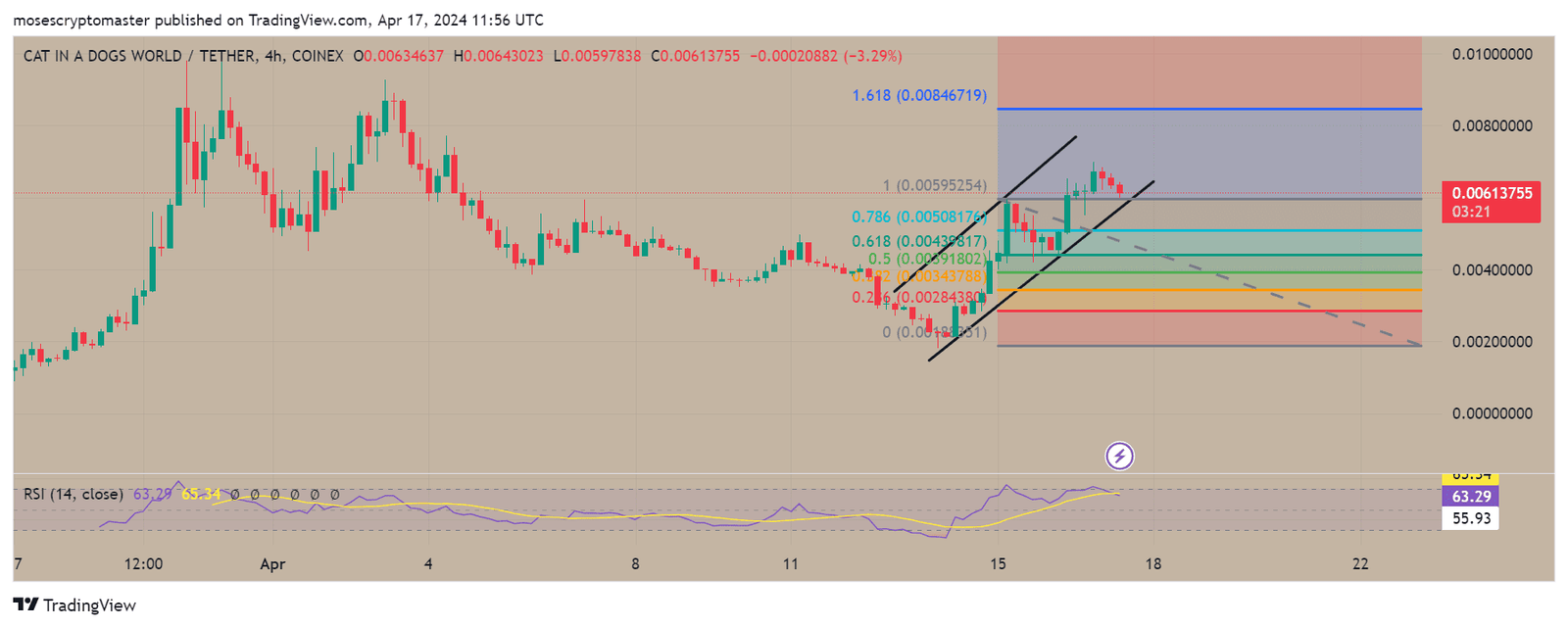 As MEW hovers around the $0.0061 price point, investors are advised to watch for a break below the rising wedge and the 0.618 Fib level to confirm a bearish outlook. A sustained move above these levels may negate the bearish scenario, possibly pushing prices towards the $0.00846719, a 1.618 Fib extension level.